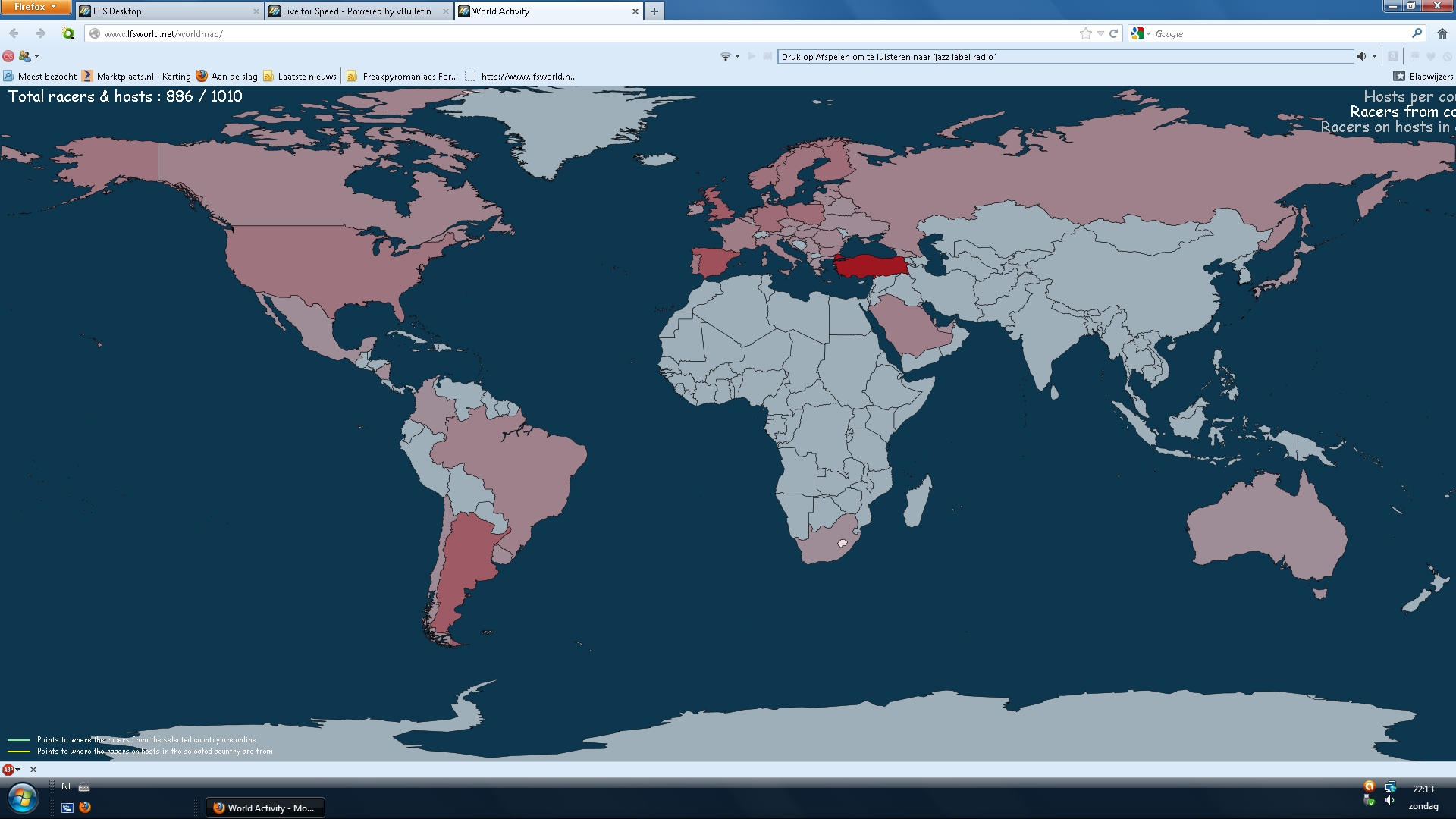 Except there's one shortcoming : there's a bunch of (mostly) Saudi people who are still on an older demo host version. I do have their combined numbers, but not their individual stats (old demo hosts don't send stats). That means that when showing host data on the map, Saudi Arabia can be coloured very red, but there are no lines indicating where those racers are.