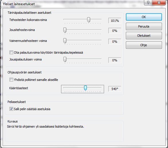 But in LFS (I have tryed couple of things like "let games control your settings" and not letting it do it, searched for the correct settings for the profiler AND the game, still the wheel in the game dosnt really turn the same way i turn it in real life..