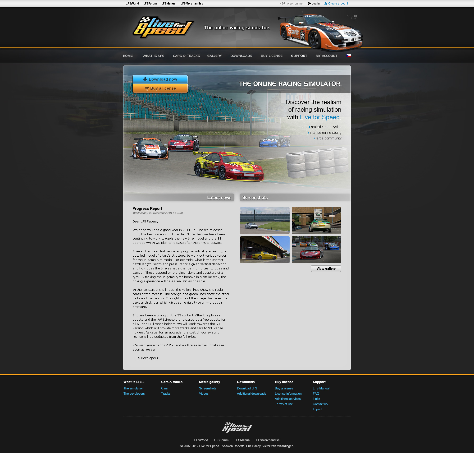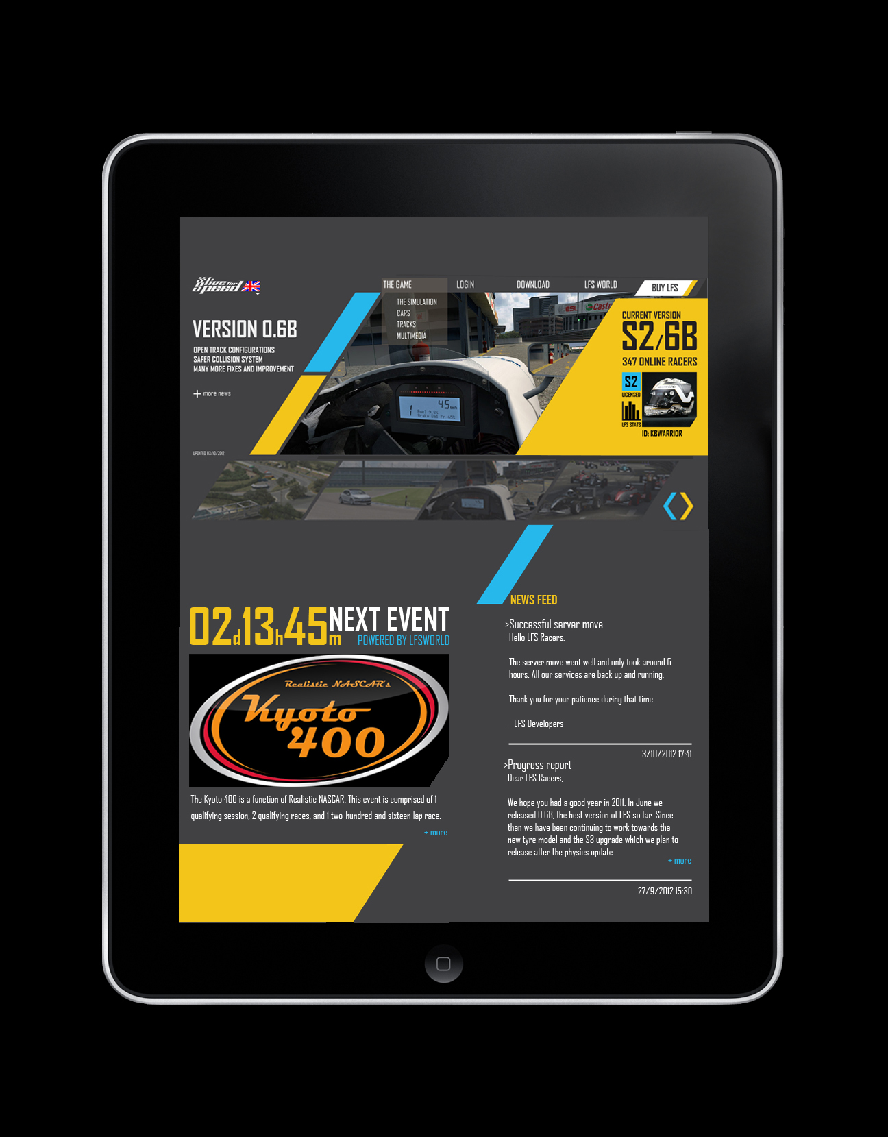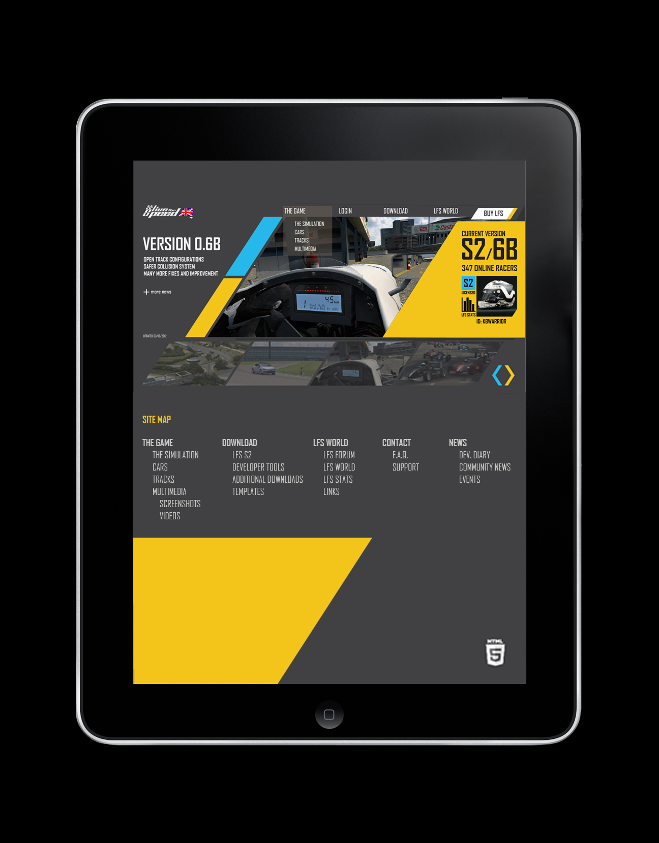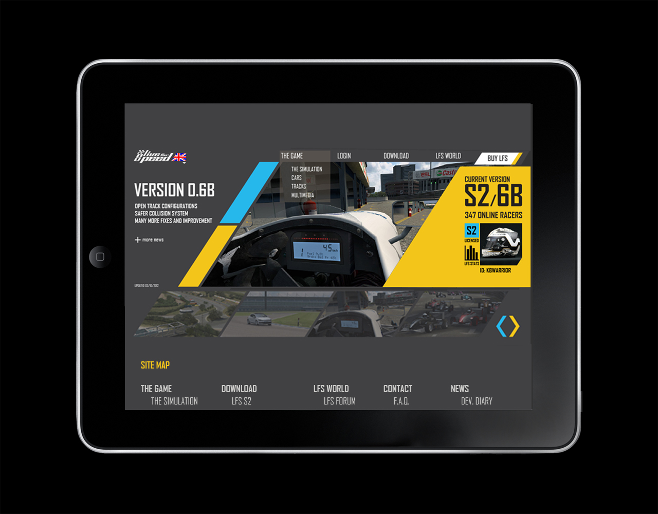 Since this site is LFS’ storefront, it needs to look nice and inviting. The first look of the frontpage when it loads will give the new user their first impression of LFS. The essence of LFS should be portrayed in the visuals of the site and in particular the front page. Excitement, Speed and Varied are words that spring to mind. Of course that can be augmented with Beautiful as well, in the way the graphics on the front page are used. But since we’re not a fairytale RPG, of course we’re not looking for curly ornaments and sprinkles. The looks should instead be focussed on tech, mechanics and action. Modernism. Cutting edge.
