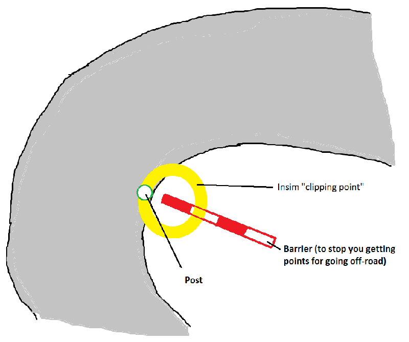 Alternatively, set up a zone (X,Y location via InSim) at these points (clipping points?) and if you get in that zone with specific speed/angle, the InSim gives you additional points.