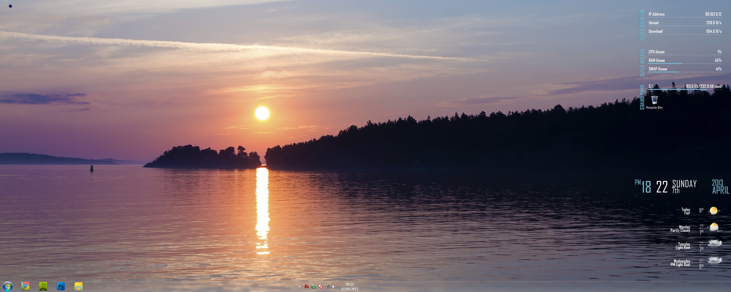 Little messy with icons at the moment because of some work and school etc. Got rid of Rainmeter.