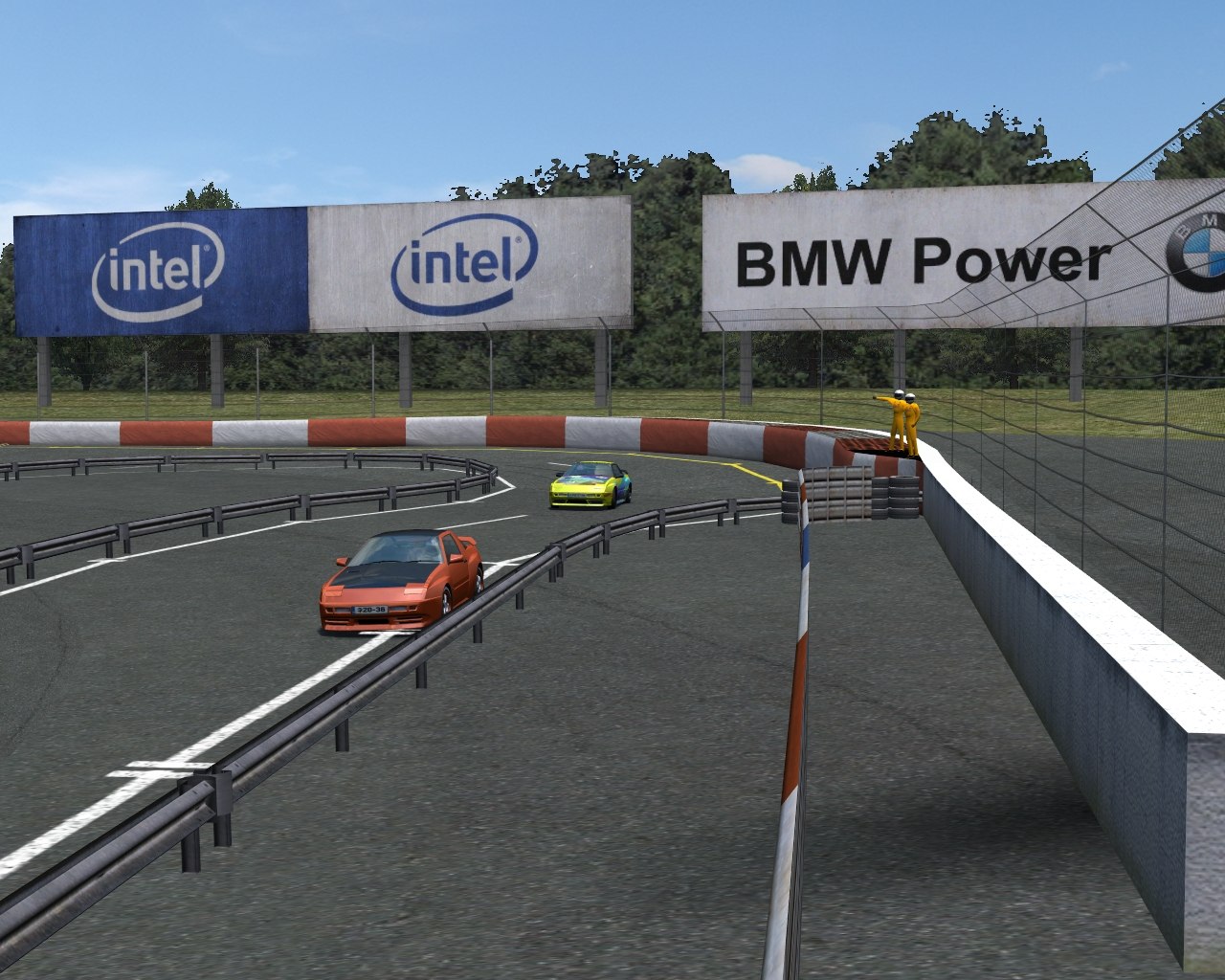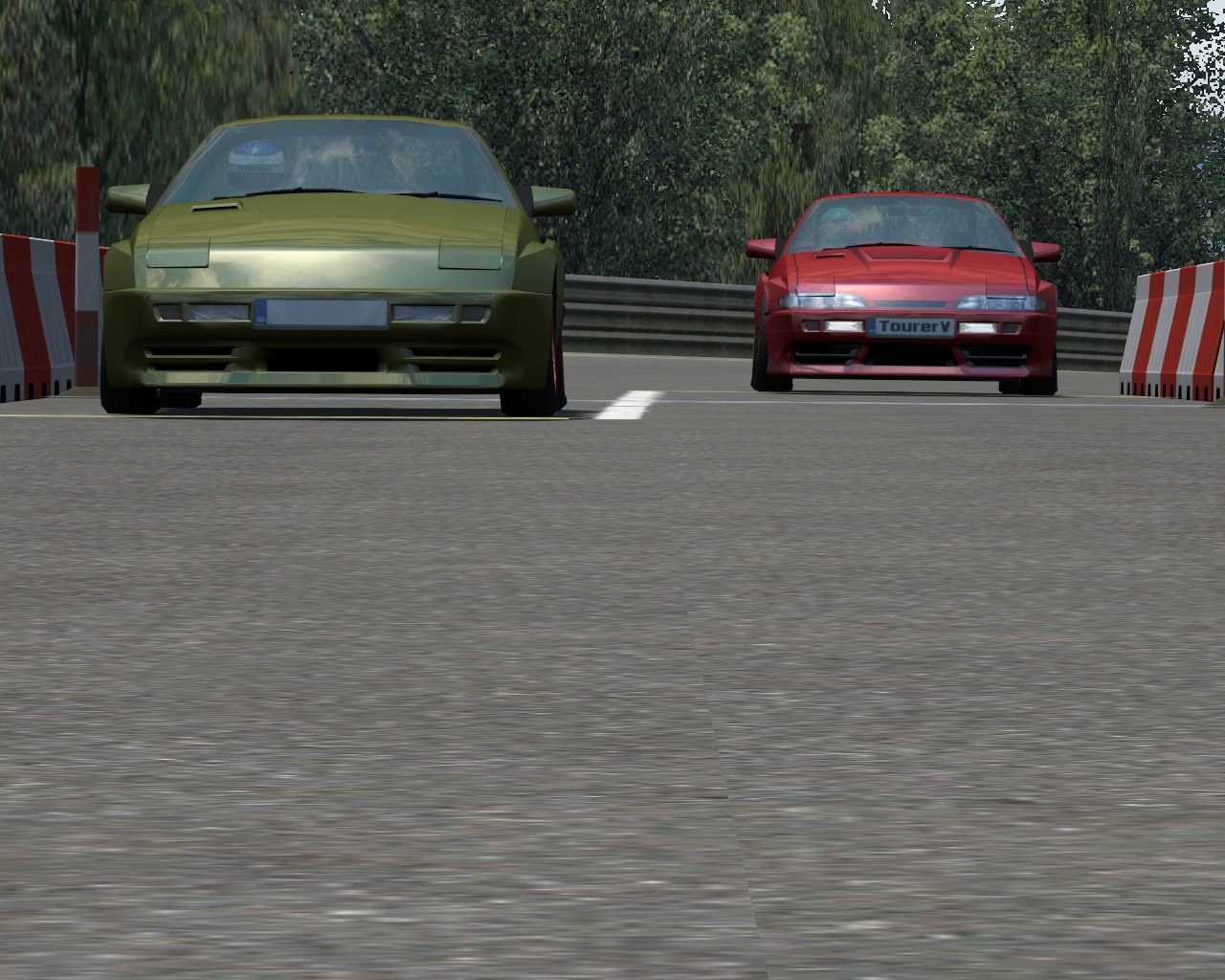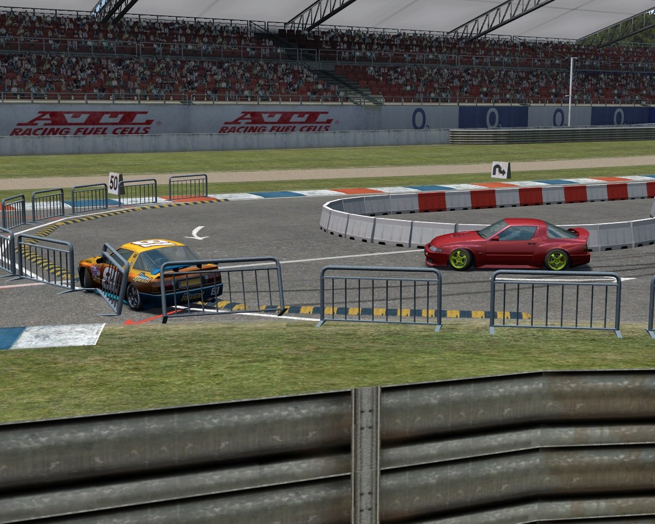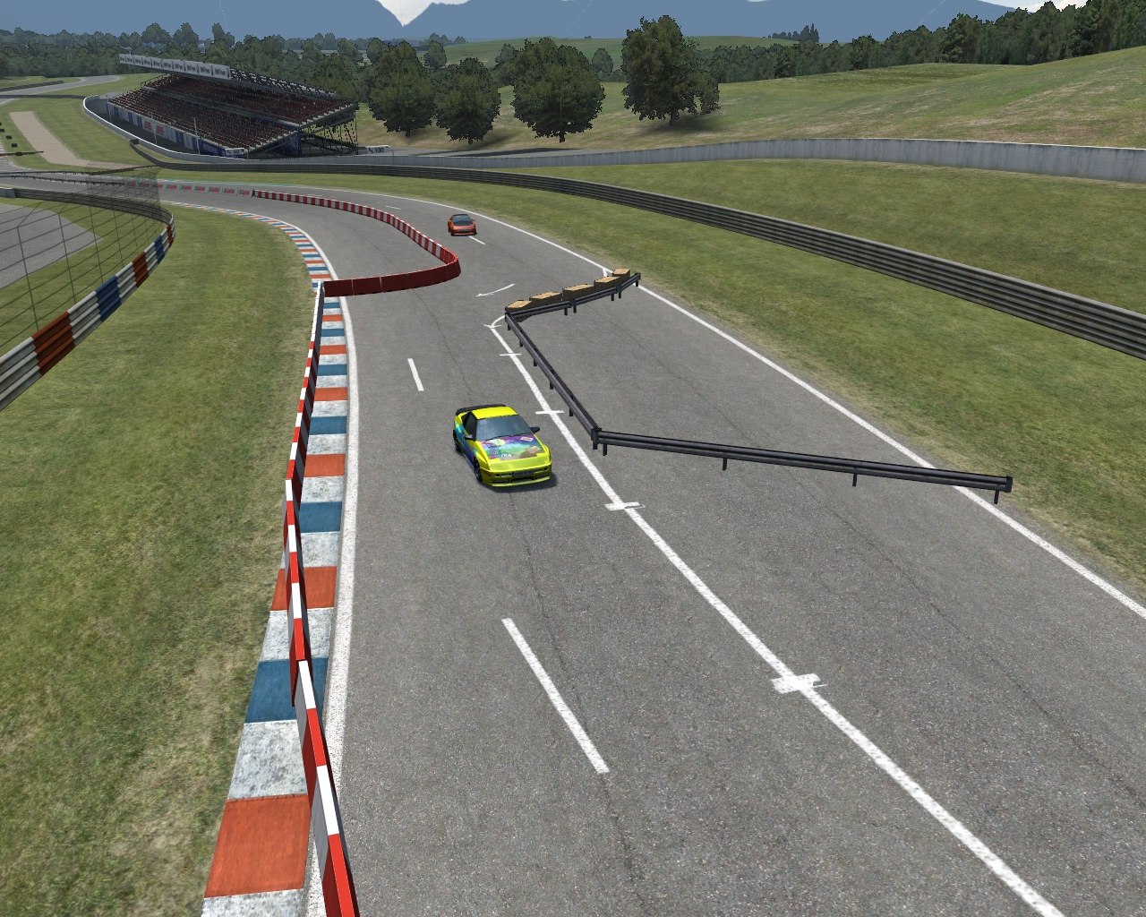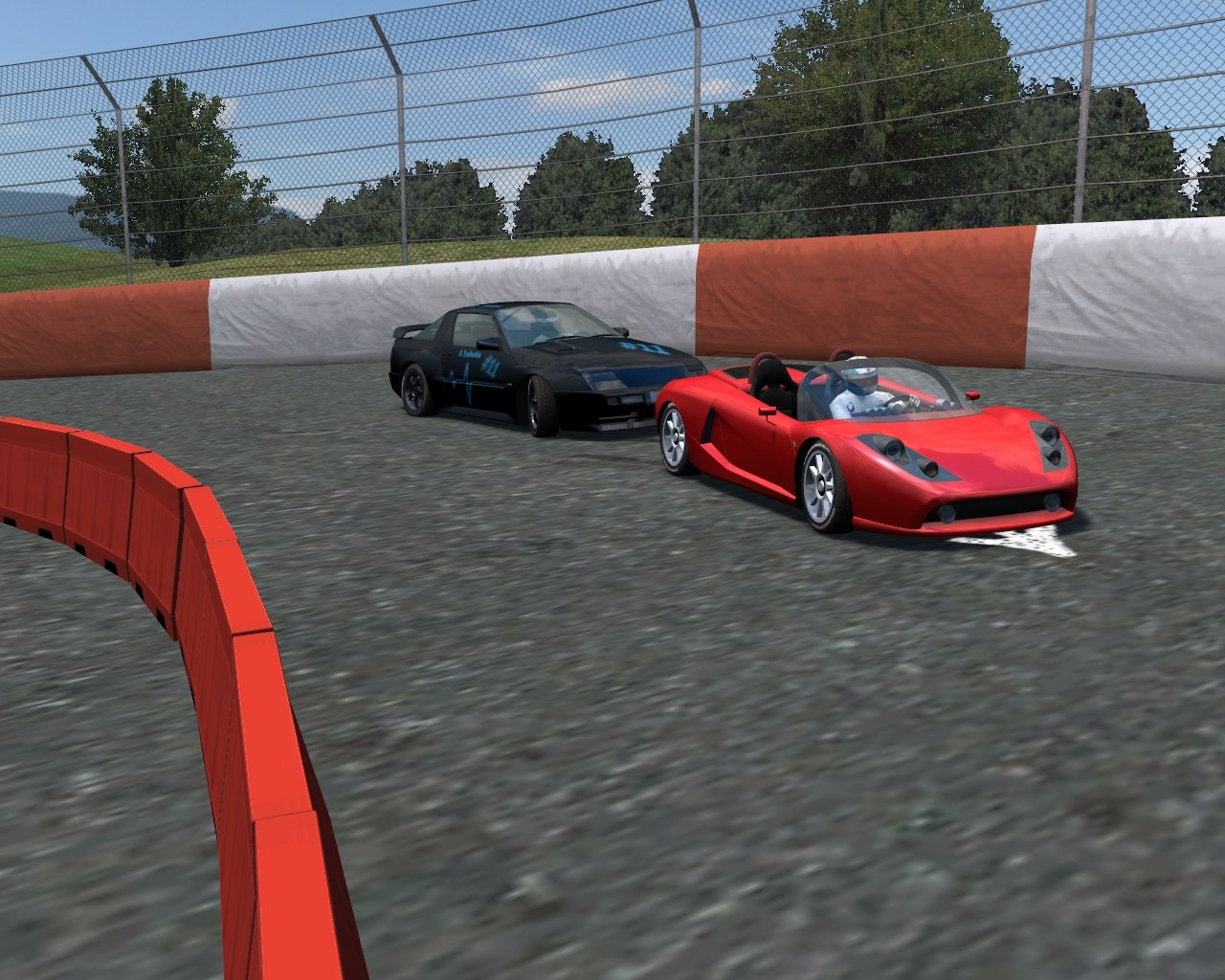 Couple of screen shots from races. In the first, I was approaching an off and the pic is taken through the chucked up dirt. The second was a near miss of a stationary spun car