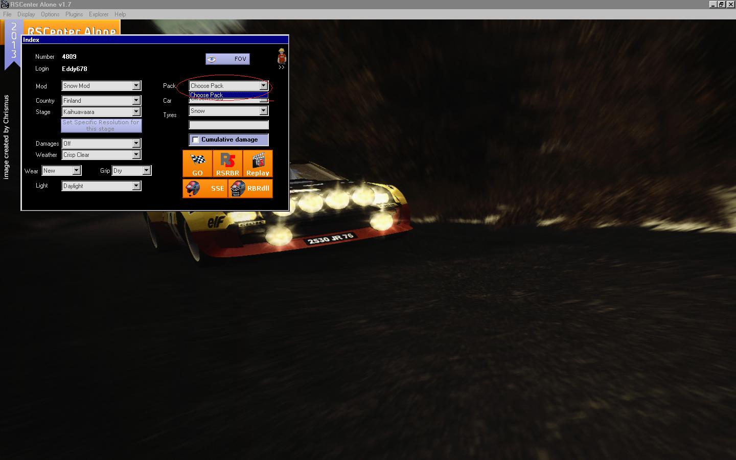 And every time I enter Richard Burns rally without opening the RScenter2013, it just comes up with the standard cars and tracks you get without the mod installed.