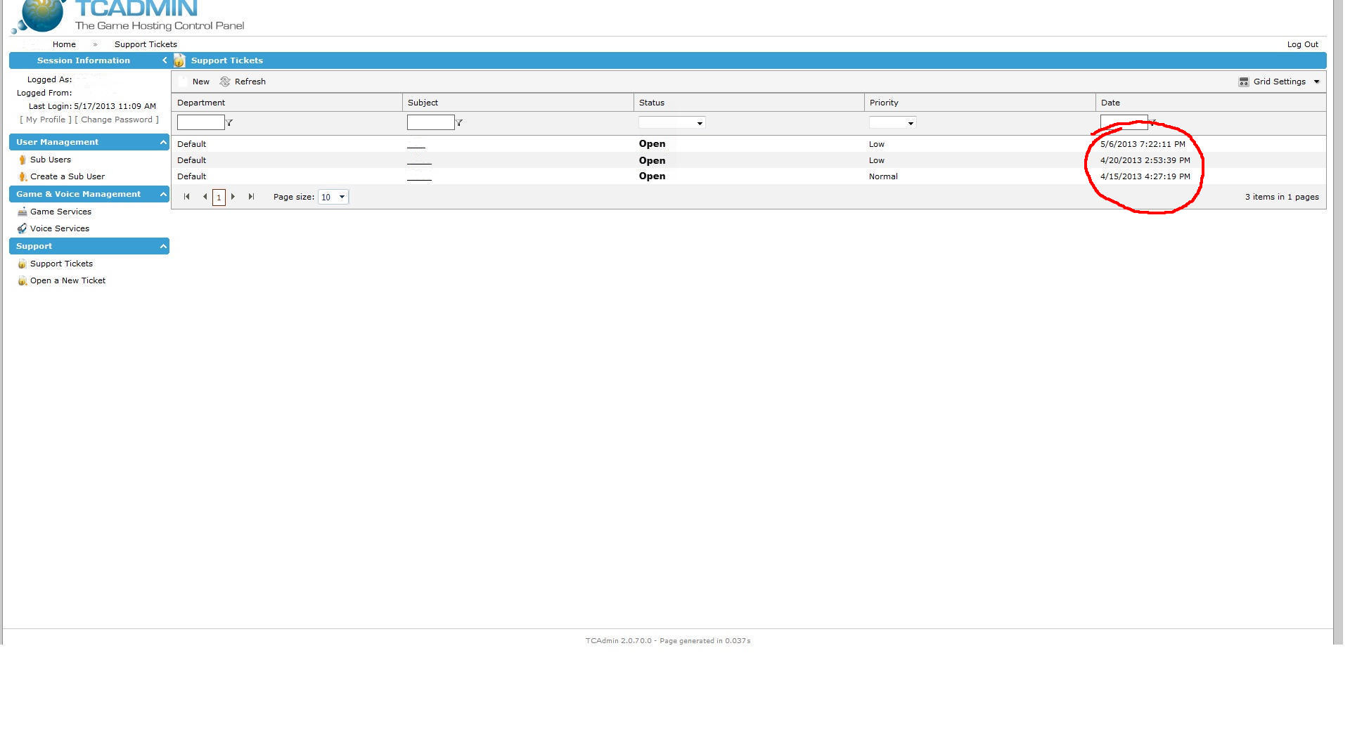 and for this reason I opened a first support ticket on the Game Hosting Control Panel.First open ticket on 15 April 2013 and >>>>>>>>>> NO REPLY