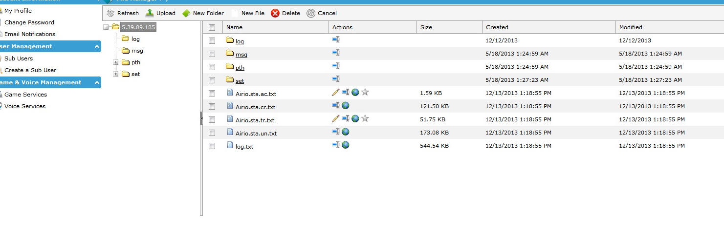 This means that your hosting provider has not configured TCAdmin for your Airio properly, as you cannot modify your files, and they are .TXT files...