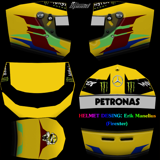 Quote from F1 mainiac :Helmet is perfect ! except that shabby Mercedes Yeah, i couldn't find a good mercedes-logo for helmet.