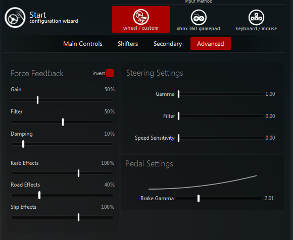 The 3 main options you should concern yourselves that correspond to the actual FFB are Gain, Filter and Damping. Filter is used to reduce clipping, it culls off spikes and damping as expected applies an envelope to the FFB making it more "mellow".