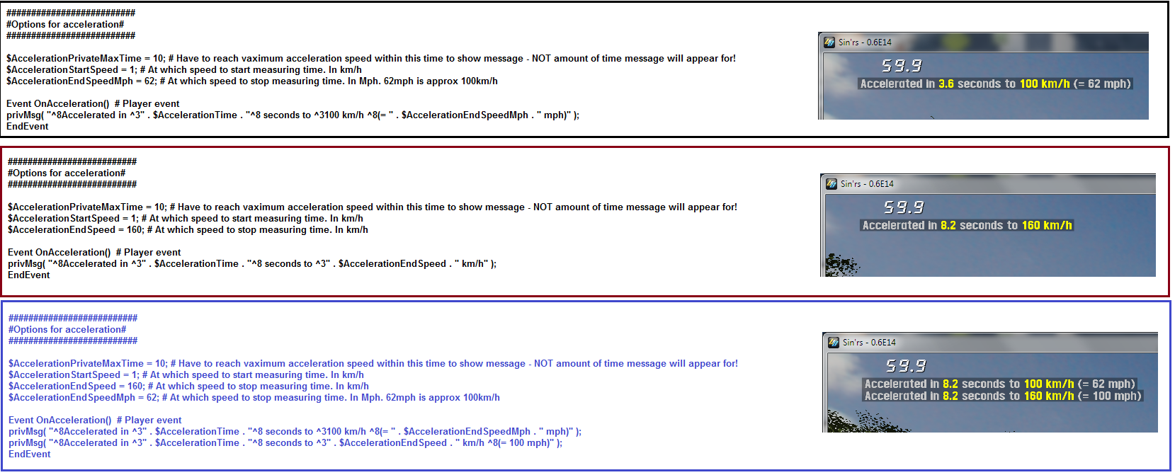 privMsg( "^8Accelerated in ^3" . $AccelerationTime . "^8 seconds to " . $kmh_mph_conversion . " km/h" );