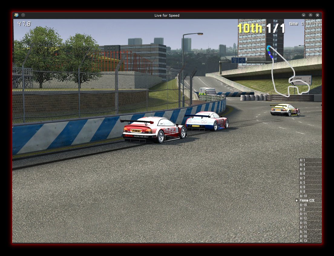 Quote from felplacerad :Edit: Just tried LFS 0.6E17 in wine-1.7.18. It ran "fine" after using winetricks to install DX9, but not nearly with the same performance as in windows (but that is to be expected, I guess?).