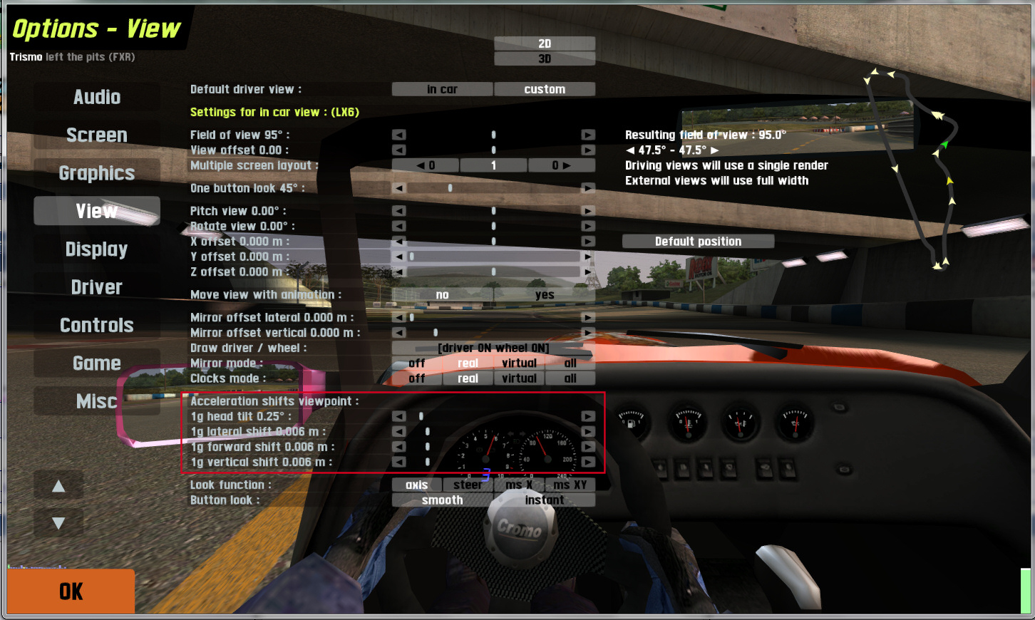 Ok so I haven't updated since F3, and now I'm on F7. I have an issue. I mean, the car seems more shaky? Maybe too responsive to the road surface? All these years I've been driving, the car bounched less and I don't remember ever changing any settings in the view option. Were there any made by default? If yes, what were they before? I'm not saying I can't get used to it, because in some door to door racing I haven't noticed it, but when I have noone around I see the difference just because there's not much to look at untill the next corner.