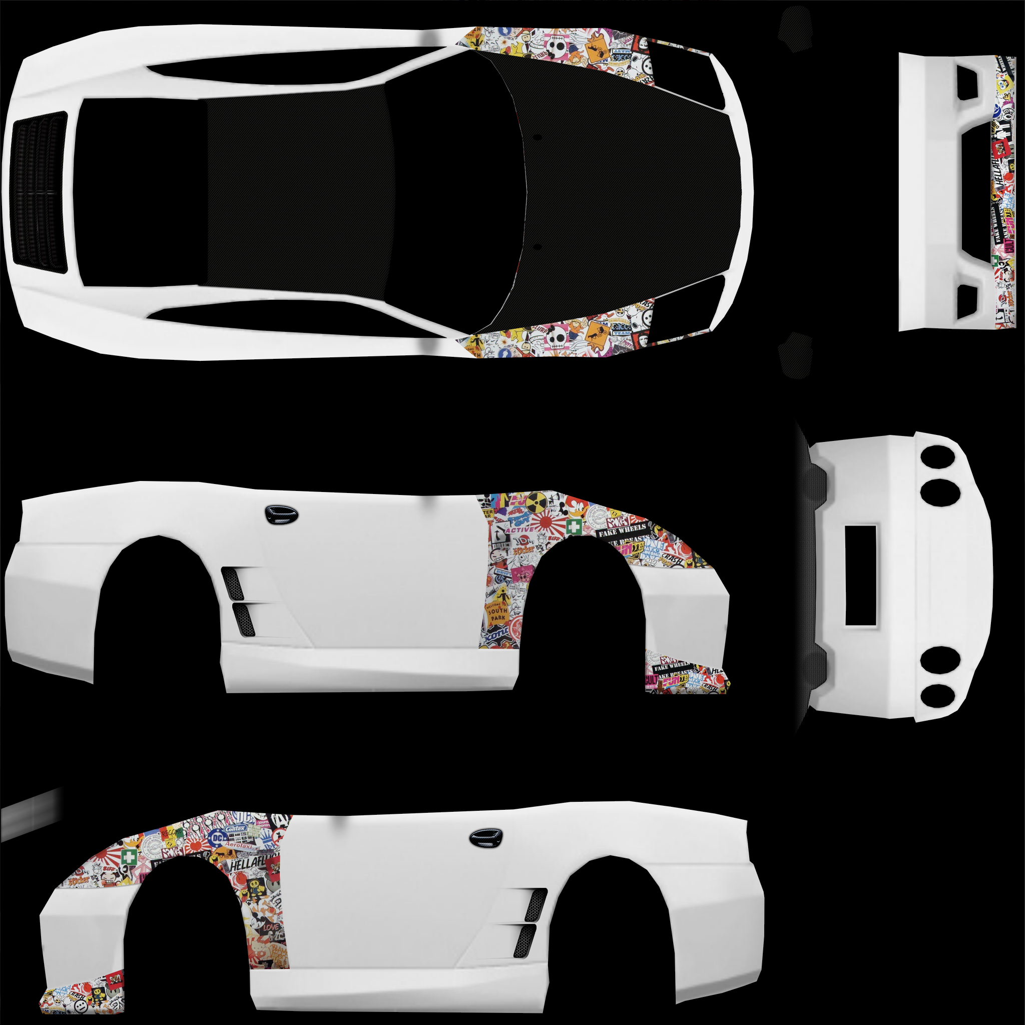 Hey, i dont know how to making or edit skins, so i was wondering if someone could help me out on a little re-work on a skin i found. i want it with plain white where the bumperstickers are on the front sides n lower front, and the thuglife img on both doors.
