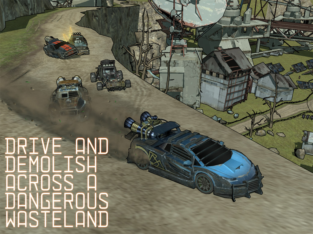Scorched is a free to play, nearly top down racing game with one-sided combat set in a vaguely post-apocalyptic future. Styled visuals and arcade driving model. Four environments (desert, forest, mountain, wasteland) to drive through, four game modes (outpace the AI, outgun the AI, beat the clock, precision driving), twelve cars to unlock, twenty upgrades per vehicle, seven weapons to unlock and upgrade, seventy-five events to play across three classes, plus bonus challenge events (necessary to use the seventh weapon). Ostensibly single player but compete with your friends via leader-boards.