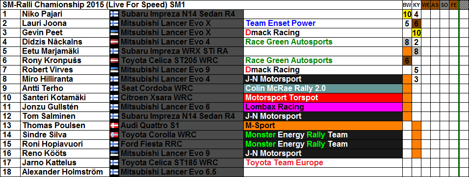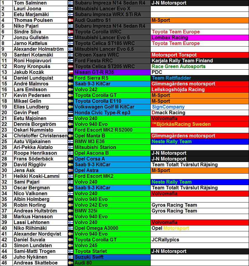- Make sure you have skins & setups in order, so you don't need to worry about them during the rally.