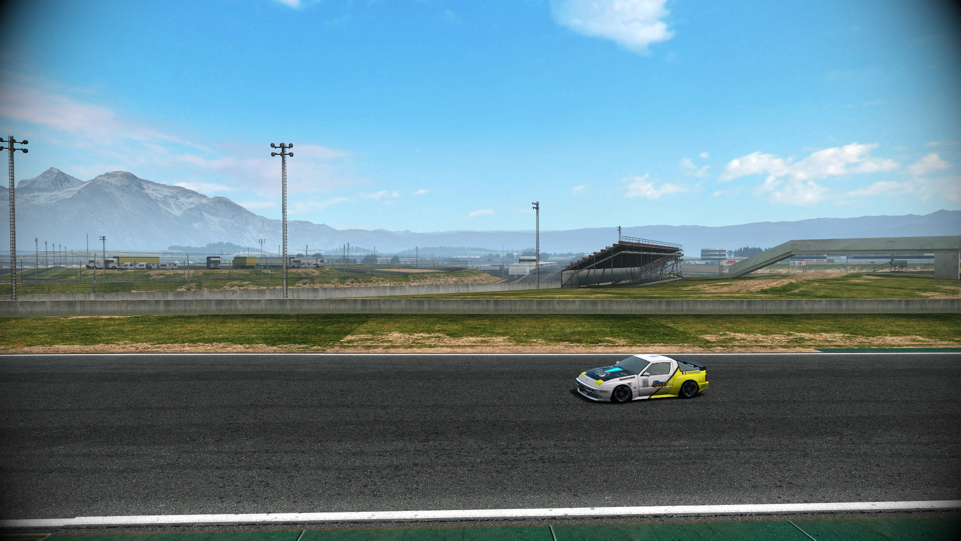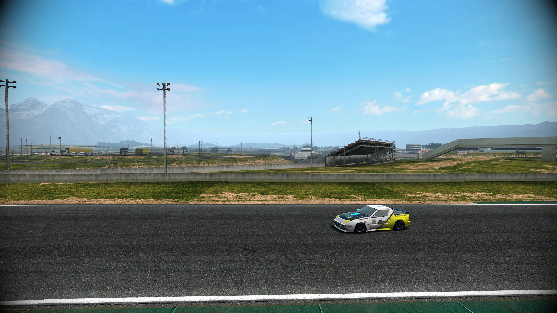 Took some screenshots. With theses new shaders, we can clearly see the lack of reflected objects on the car, there is only fences and tree that are really close to the car. That's too bad, I was hyped for a new one pass rendering technique to do full sphere mapping on DX9, but this is just wrong I'd say, it's still as unrealistic as before on covered areas of the track (on RO for example, with bleachers not displayed on reflections).