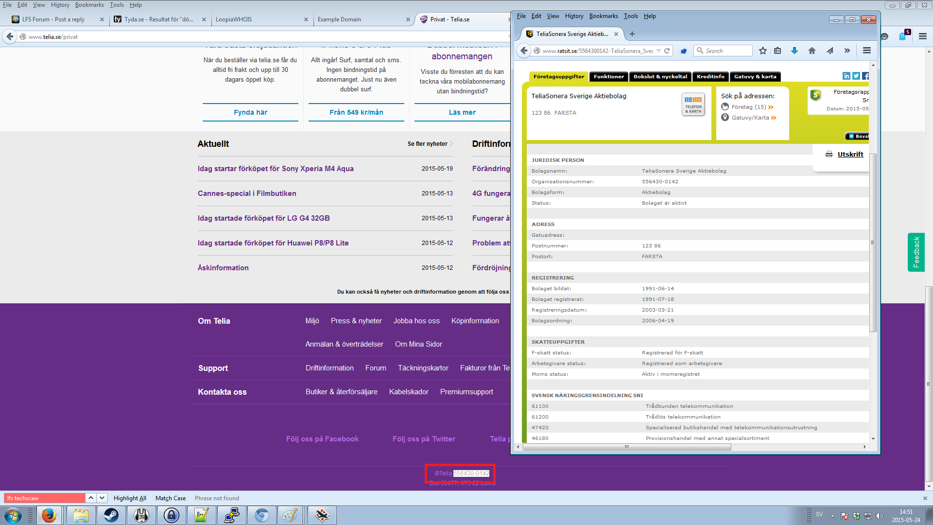 required to provide their organizational number clearly on the website, which you could then use to find more information about the company (see second attachment). If a company does not provide their organizational number, or if it is at least not clear which the company is, I'd definitely consider it a dubious company and take my business elsewhere -- Obviously that might be different in other regions.