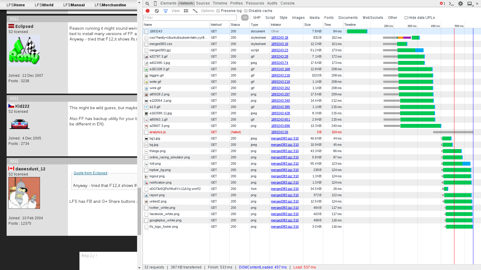 Anyway - tried that F12,it shows lfs.net first and then 2 facebook and 1 apis.google.com links. What the hell? :o