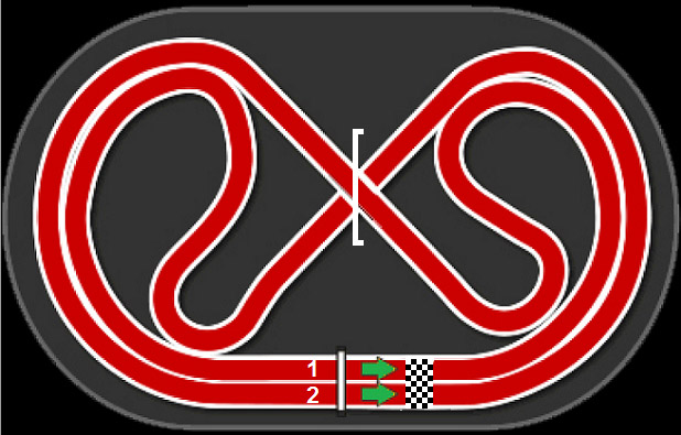 At the moment, if I was to place finish line across lanes 1 and 2 of layout (as per 1st image), then regardless of which lane you start in (1 or 2), once you do half the circuit (start/finish line of lane next to where you started), then you will cross the finish line, and race done.