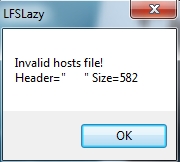 Quote from 1303s_vortech :Delete LFSLazy.hosts in "[LFSDIR]\LFSLazy\" and try again.