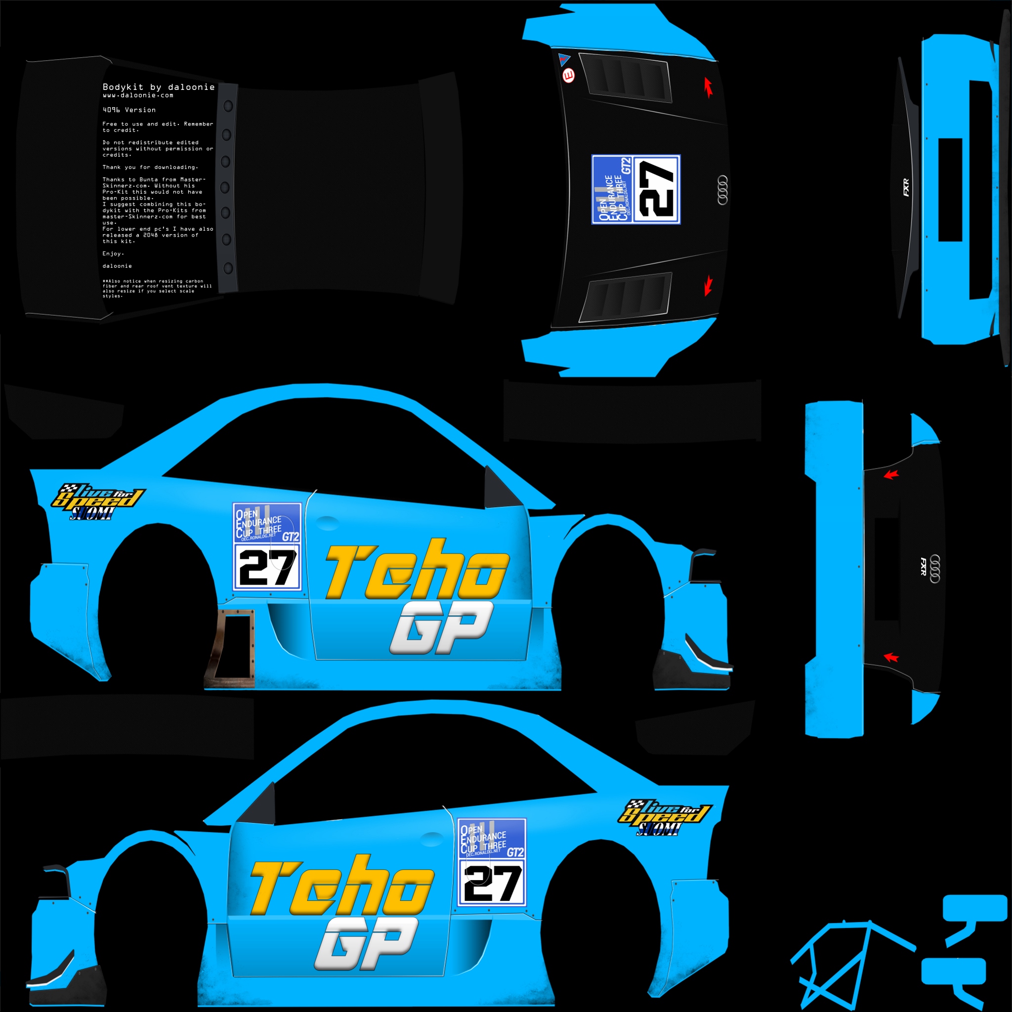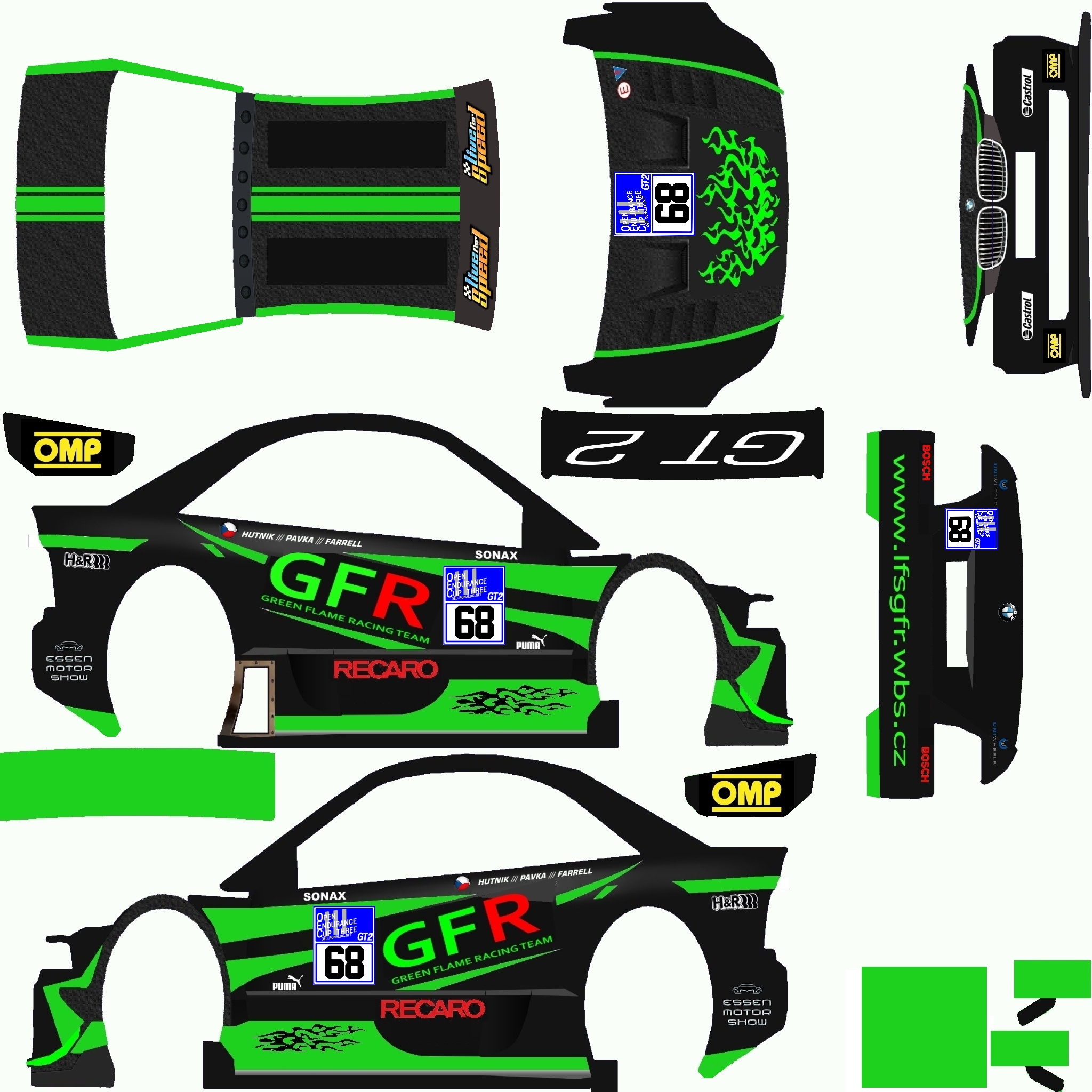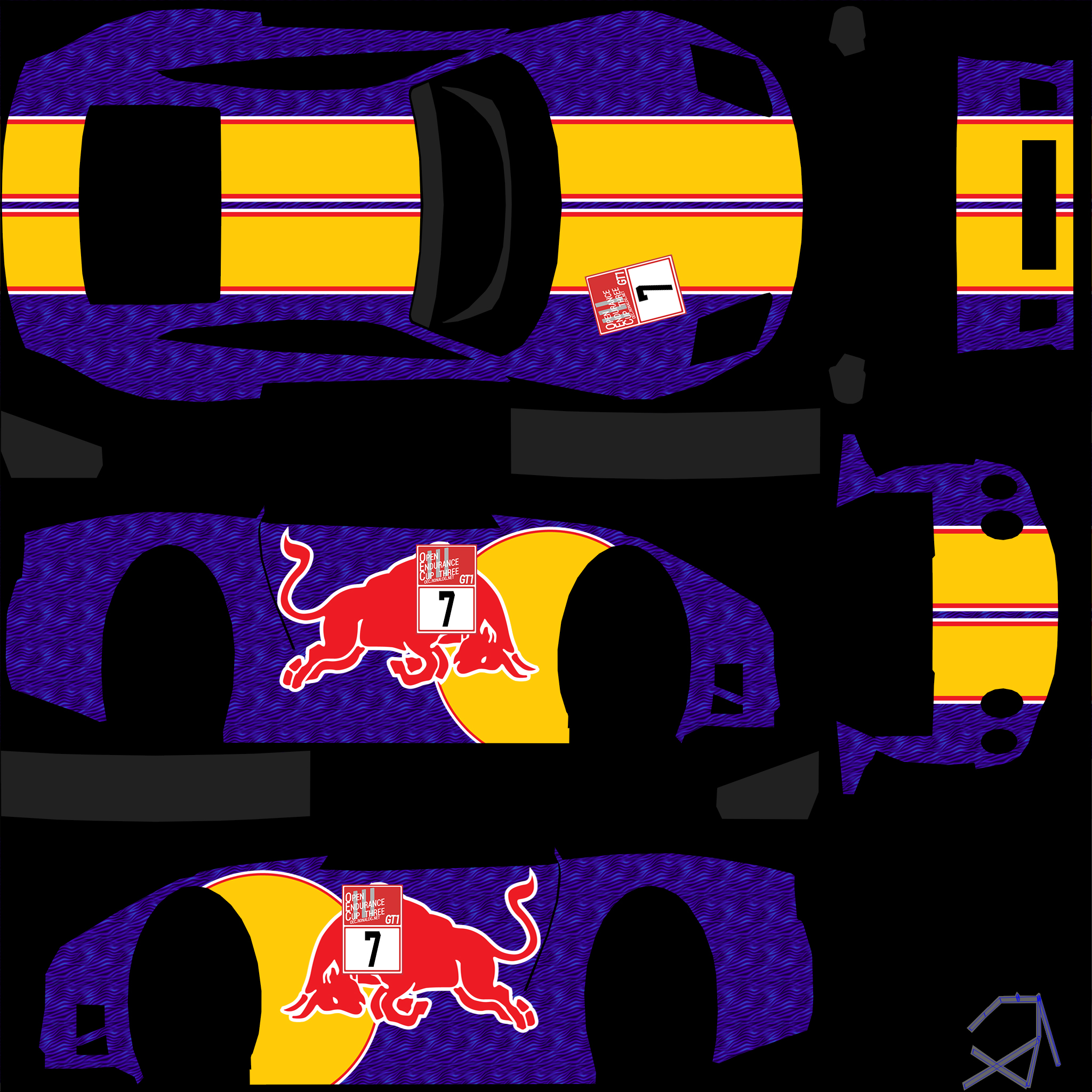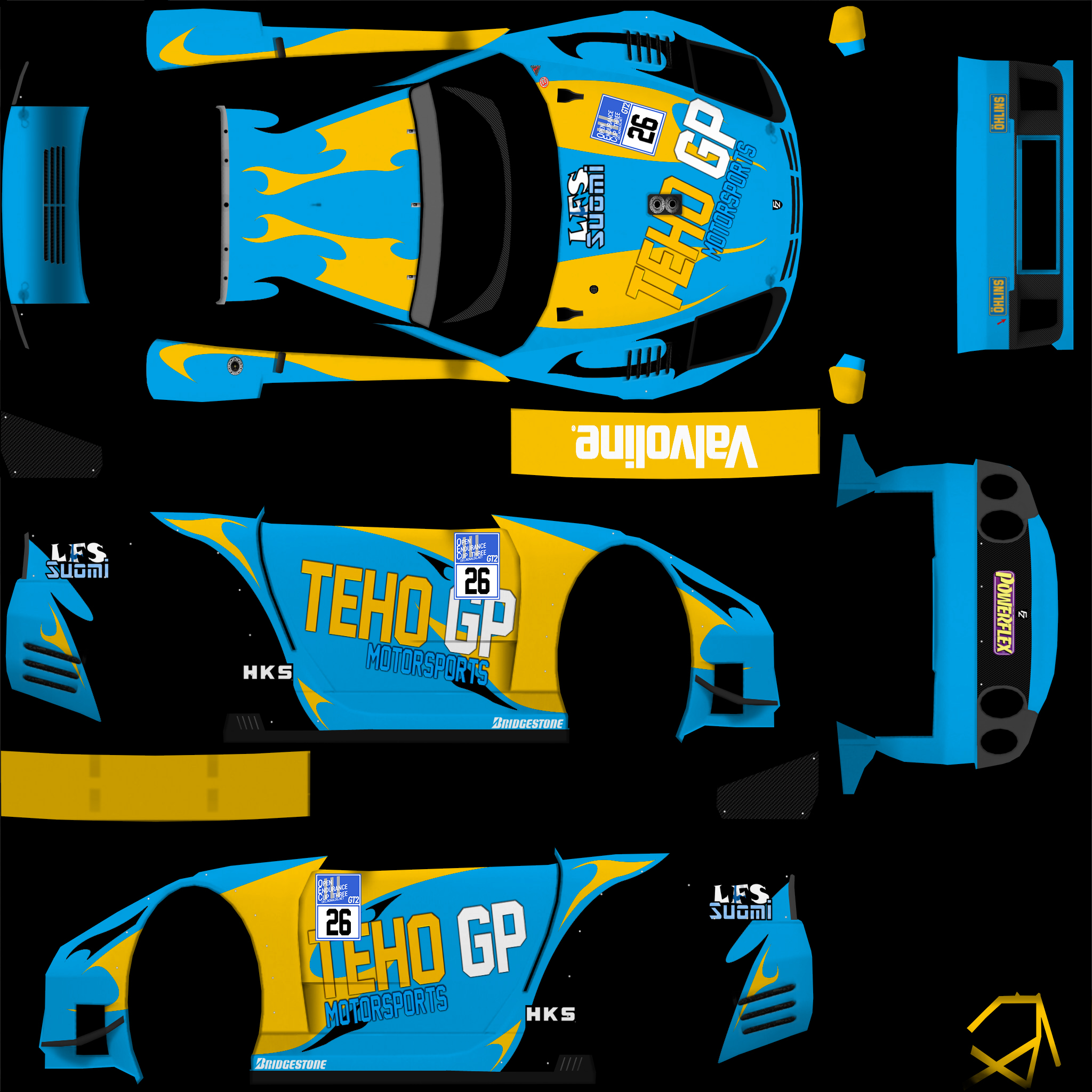 Quote from pantiainen :Here is our car skin. Does it fit the regulations? I could not find whether the colour of the rear wing and mirrors should be different in GT1 and GT2. What is the colour rule?