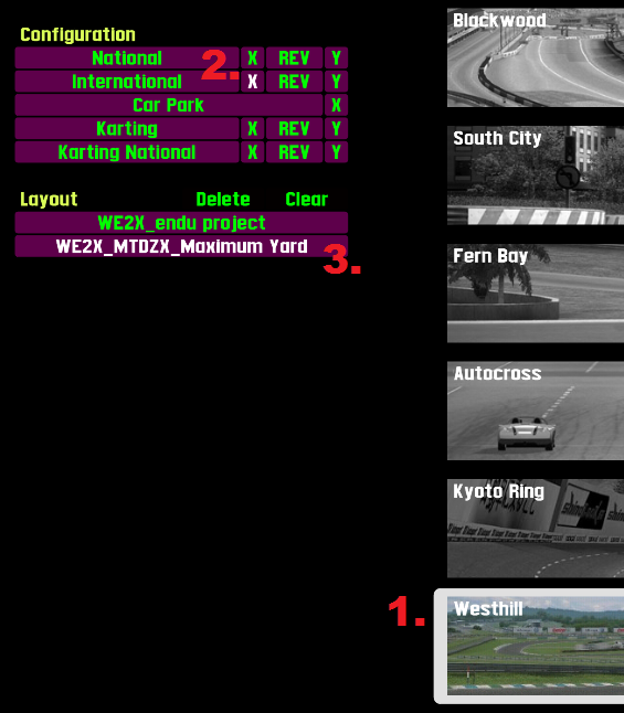 However, I can't get it to work. I installed it just as you said (method 1 worked, but I tried method 2 just in case). I can select the track if I click X on the Westhill International but it doesn't bring the track up. What am I doing wrong?