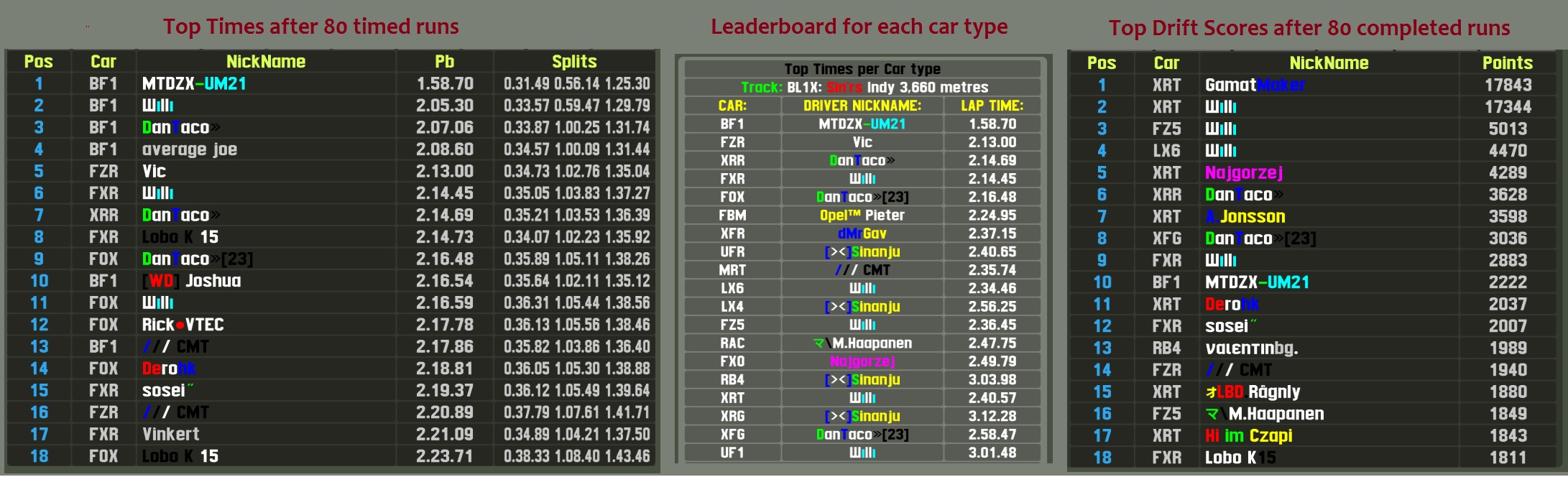 Very busy on server today, with lot of people completing full runs, so changes to top times and drift scores ...