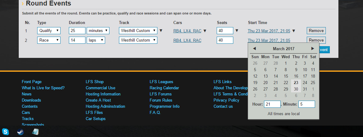 Days and times are correct, but for example, 23th of February is actually Thursday, not Wednesday, as it shows Sunday is the first day. Correct one should be Monday.