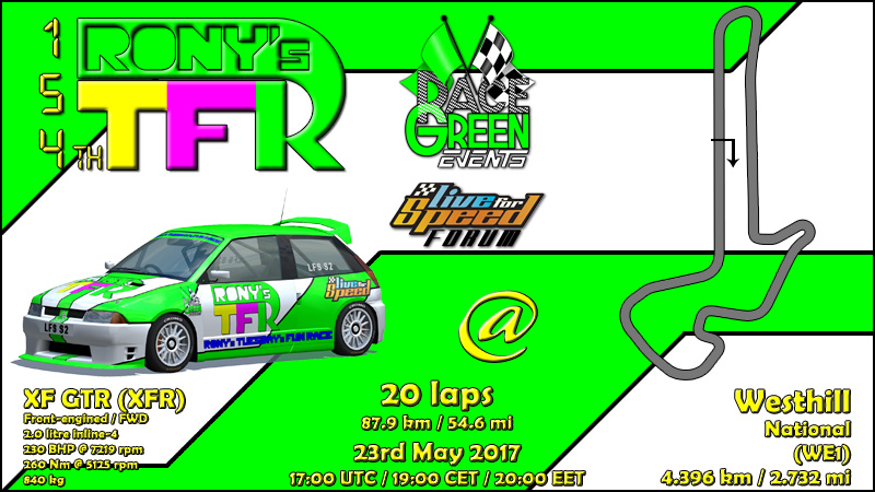 Most likely we will have more elbow space on track in the next RTFR race in two weeks and also faster cars too,but first there's the other event ahead - already next tuesday we will have the XL version of RTFR,featuring the fastest aids free car of LFS - Formula V8,raced on Westhills longest and fastest official configuration. Detailed info soon!