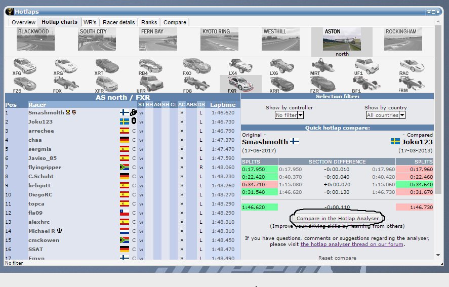 Yeap. I have tryed tohose setups and none come close to an wr set. In test drive after watching wr replay I can do 1sec of than with setups found from "https://www.lfs.net/files/setups/FXR/AS60"