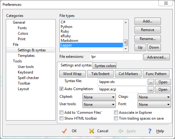 • Copy the lapper.ini in (Path where you installed PSPad)...\PSPad editor\Syntax . ( default is C:\Program Files\PSPad editor\Syntax )