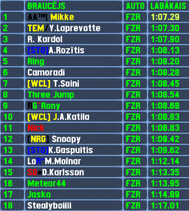 A driver who never ever competed in any Race Green Events races came by yesterday and jumped into top 5 finishers right away,accompanied by 2 teammates who did not join the qualifying nor race. No information what hides behind letters "NTR",but driver's name is Sende.