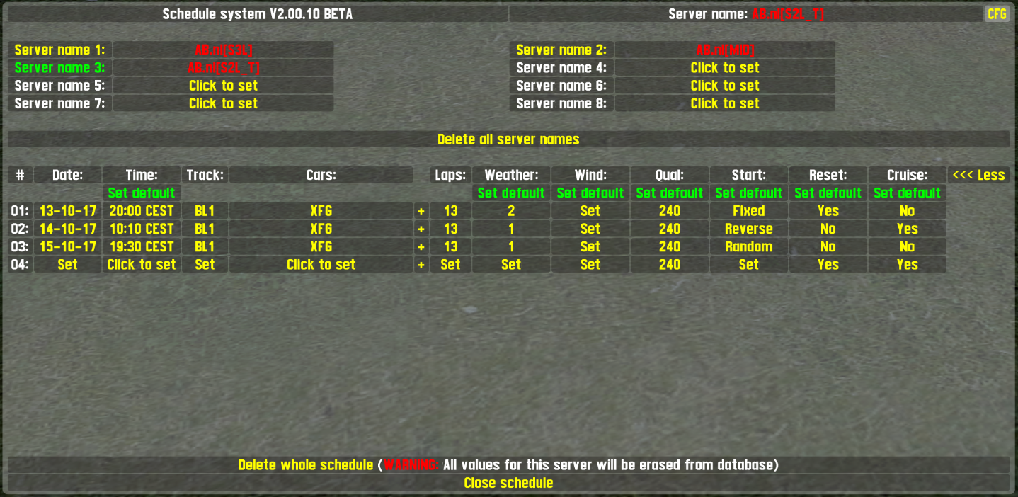 Text in yellow = A name for that server number is set, schedule ISN'T loaded