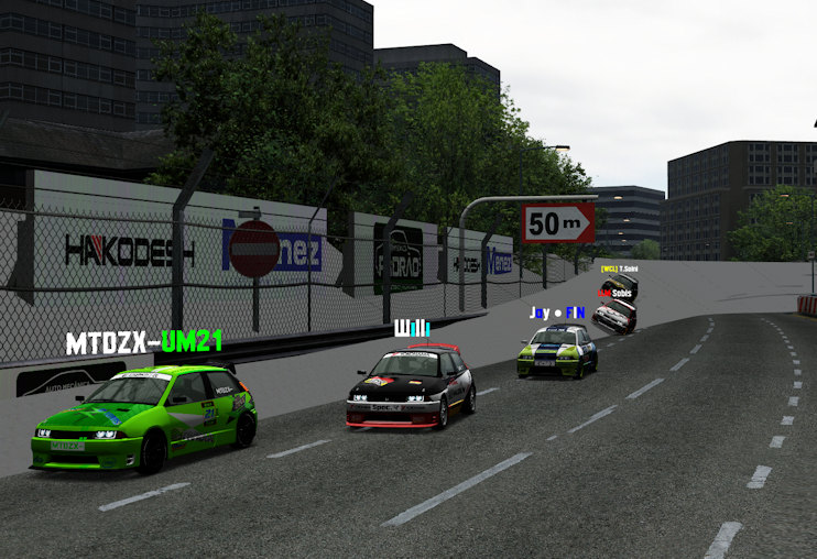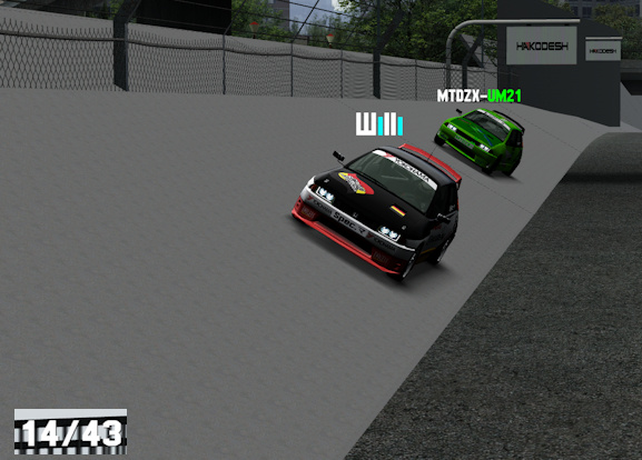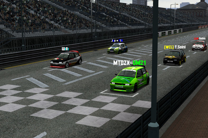 6th place goes to UM21, who selected RaceAbout 06 car had suffered suspension damage. RAC is the one famous car and least wanted generally, but on short races, it's pace speed goes on par with XR GT3. However, there was strategy play going huge, as driving RAC alone in Flame's Banked, it consumes 1,3% fuel per lap, forcing to make refill the tank anyway, unless driven with some draft by other racers. That strategy play was going kinda well, but ended by required pitstop anyway.
