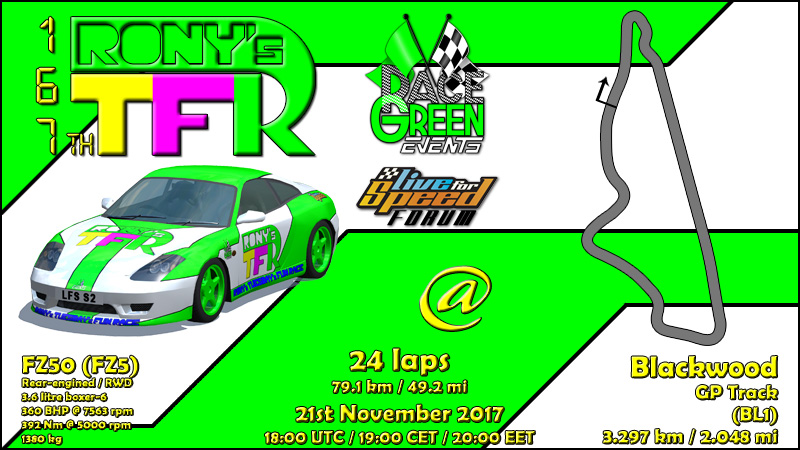 And there is another event for Race Green Events - the 7th season of All-wheel-drive Winter Series is set to start this sunday - all the information and signups can be found here: https://www.lfs.net/forum/thread/91737 - league involves AWD car racing in different conditions and awards the best 3 drivers during the season with small money prizes. Sounds interesting? Make sure you don't miss out the action!