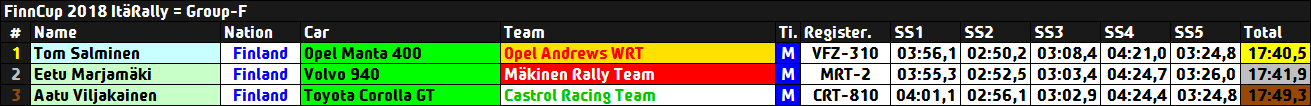 Congratulations to Aatu Viljakainen for his first FinnCup Group-F Victory & Misho Velikov for his first Junior Victory! I don't think anyone saw these coming, eh?