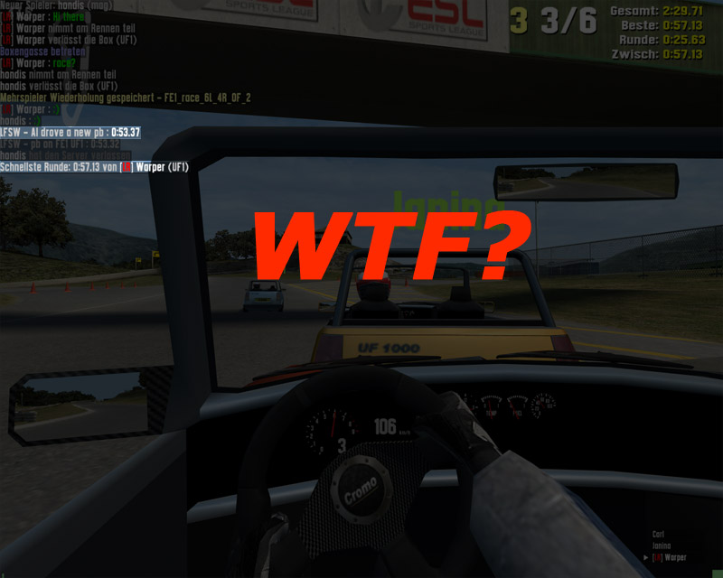 i'm a little bit confused. Just a sceond ago, i raced on my own (online) host just against 2 AI drivers, called "Carl" and "Janina", on fern bay club with UF1. When "Janina" passed the finish line after lap 2 there appeared the following messege: "LFSW - AI drobe a new PB - 58.00". Does LFSW log the AI-times too?