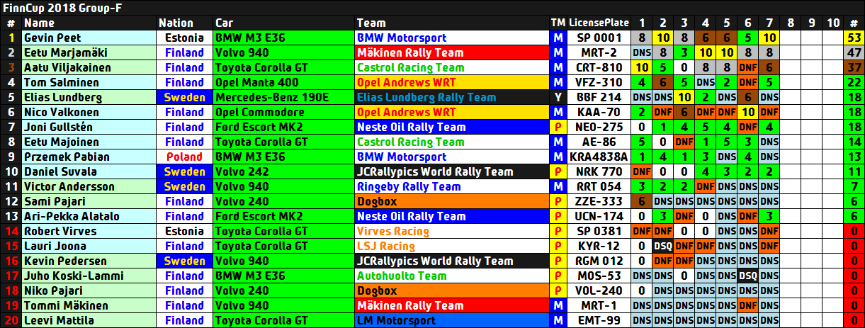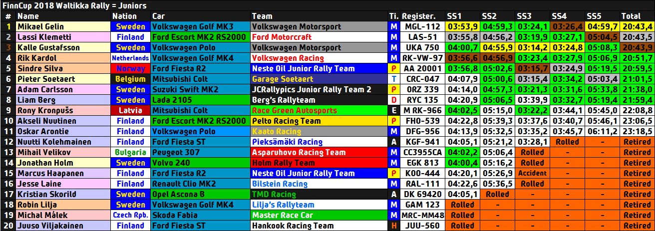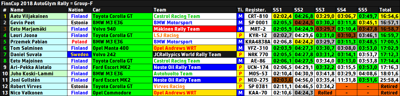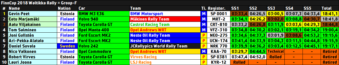 Waltikka Rally, FinnCup 2018 Event #7 (15.8.2018)