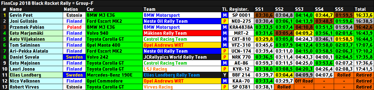 Black Rocket Rally is over. 36 cars in total and 3 of them were driving for the first time.