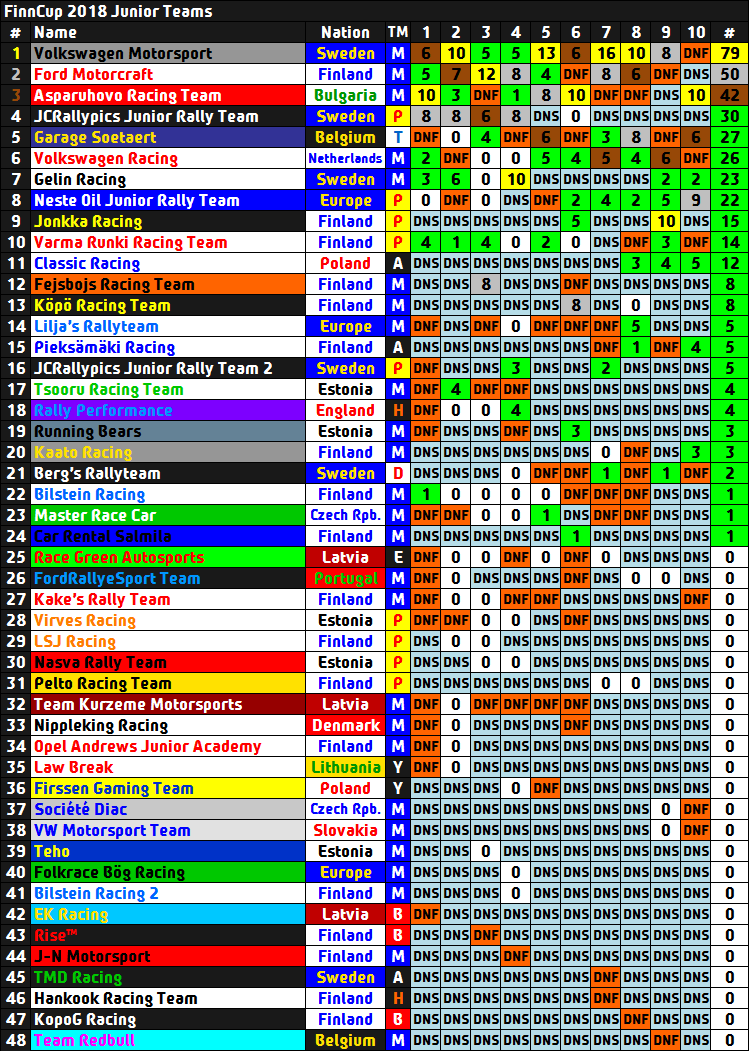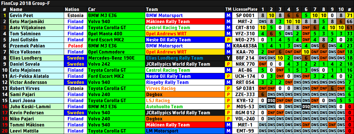 Gevin Peet extends his lead to 11 Points. This means that Aatu Viljakainen is out of the championship battle and the battle is now between The 2-Time champion and the Challenger, Eetu Marjamäki. No changes in Team Points.