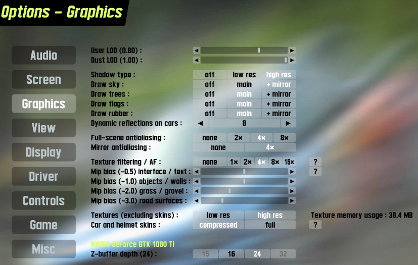 My specs are built around Win10 64bit, i7-7700K, GTX1080Ti (11Mb), 16Mb RAM, Nvidia driver 417.22.