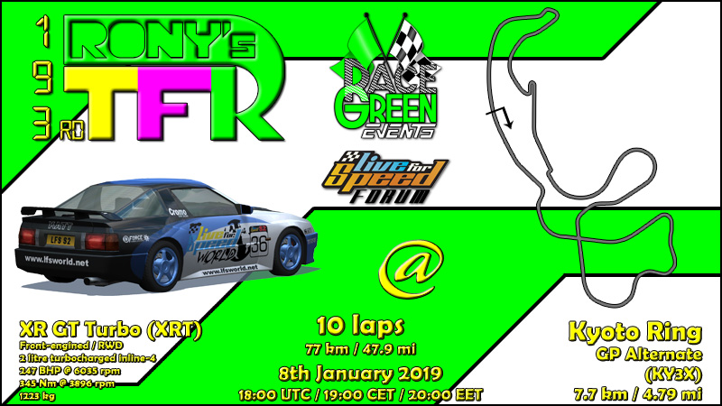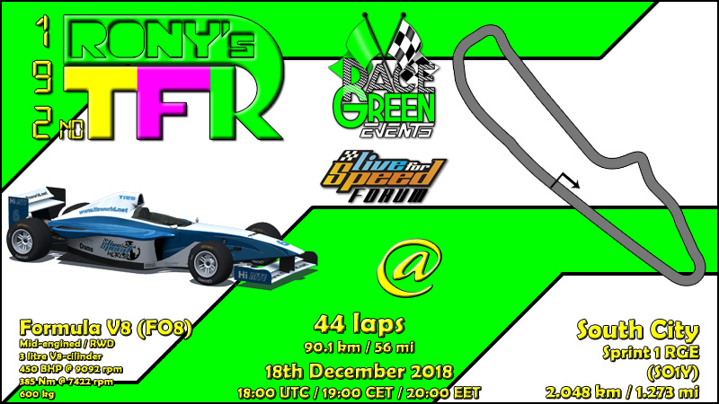 In the 3 weeks until next RTFR Race Green Events will offer other racing - already next week the well known Xmas derby will return,more info will be posted soon. And in 1st sunday of new year AWS will be launched with traditional NewYear City Challenge as it's 1st round - full schedule is already posted in lfs.net calendar,more details during this week.
