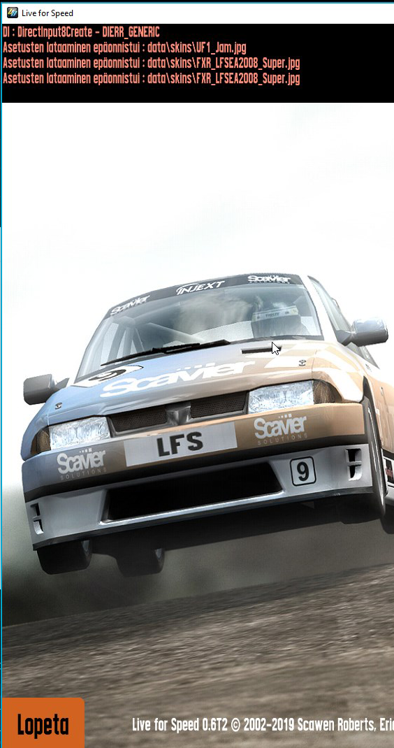 the program (LFS.exe). At the bottom of the entry screen: 0.6T7