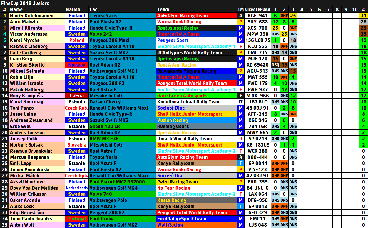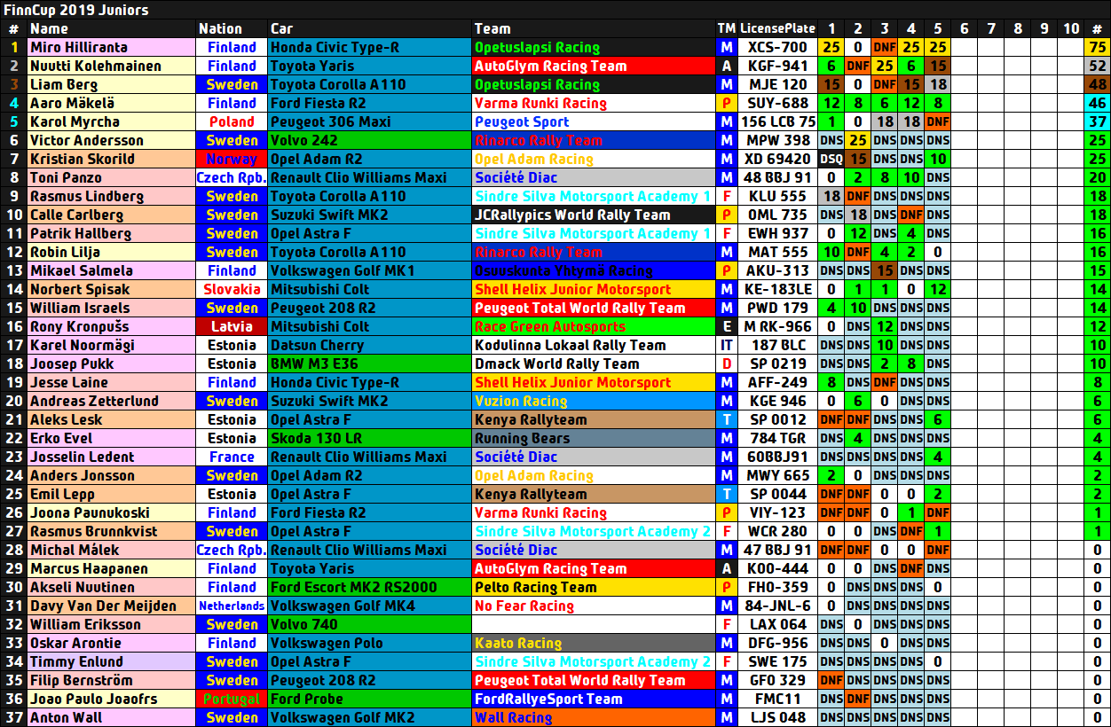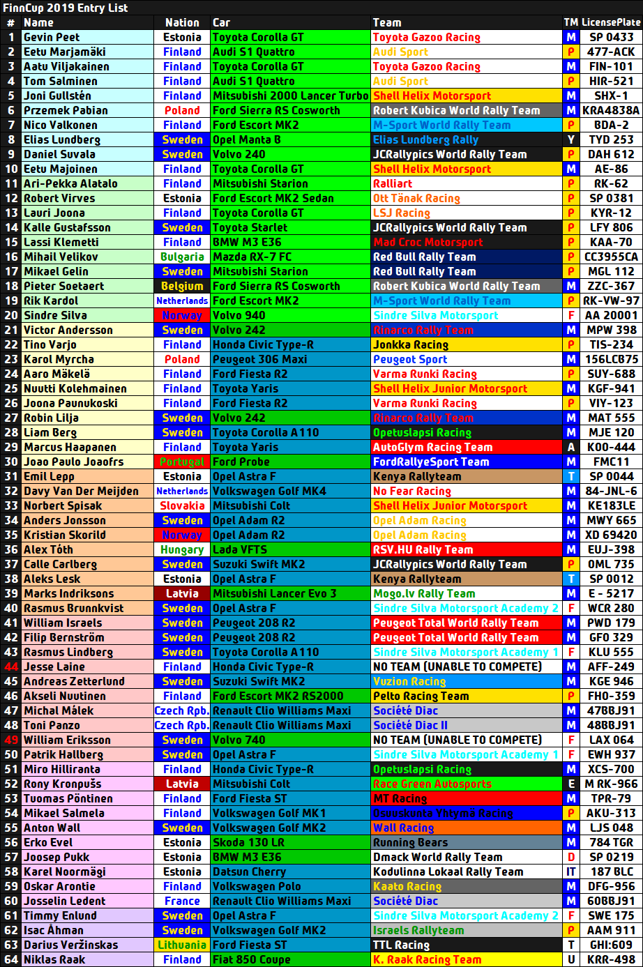 FinnCup 2019 Calendar has been published and I've updated the Entry List.