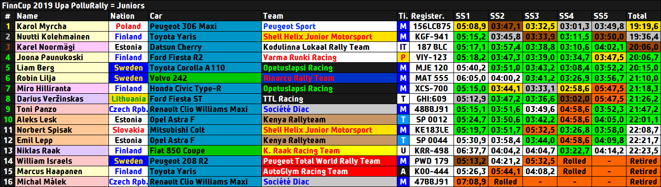 I'm uploading both AutoGlym Rally & Upa PolluRally results.