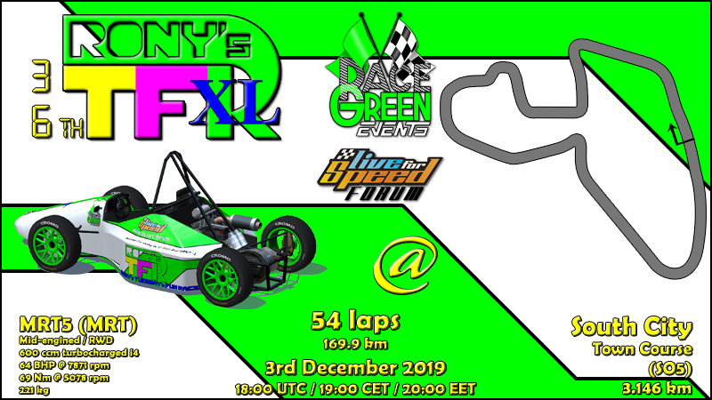 4 weeks gap between XL races as always and the combo for next one has been already submitted. It will be the 3rd race in row where a previously unused car will be used,this time the fastest LFS car BF1. The selected track is Kyoto National Reversed,which is a great variation of speed and cornering. Already next tuesday the normal RTFR returns,one of the road legal cars will be used,more details tomorrow!