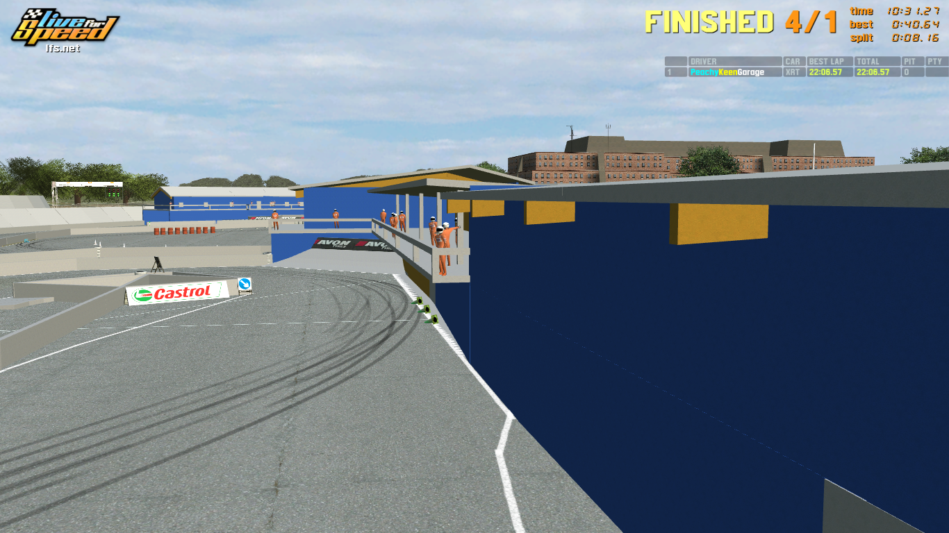 -Pit boxes are located in the center building