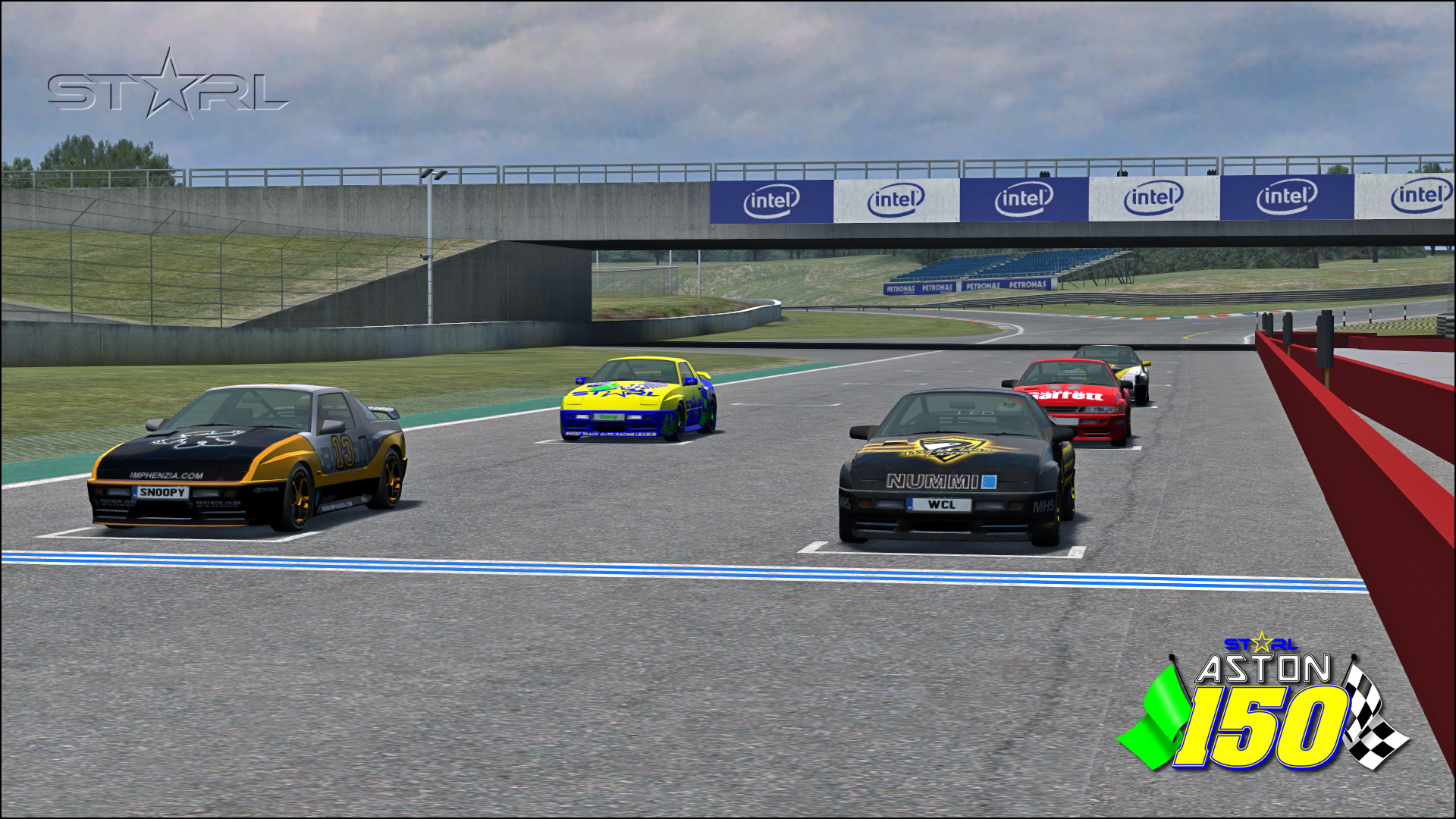 It's quite a transition from 4-turn dirt oval to 5 turn road course - but this is the character of STARL! The Aston South features 2 different tightening 180° left turns,a chicane and a kink just before the start finish line - both tightening turns are the ones which will decide the pace,as driver needs to find the best line through and also best braking point - you'll go flat out the early part of turn one before searching the right place to lift and apply brakes. Do it wrong and you'll either run out wide or lose a lot of speed.