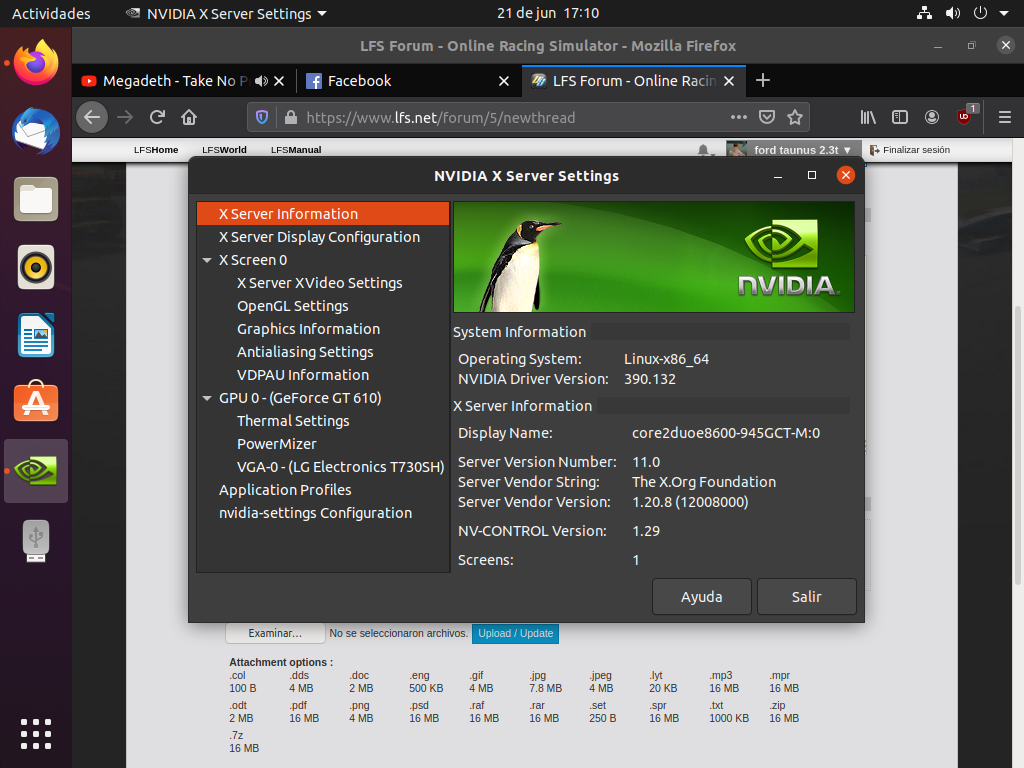Hello LFS team my name is Federico (ford taunus 2.3t). I need help configuring graphics in Ubuntu 20.04. The most current drivers that my video card supports (gigabyte gt 610) are version 390.132. The question is that with the current configuration it runs with few FPS. Graphically everything is in low quality or in off