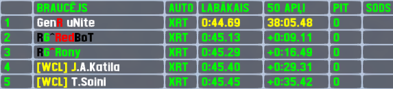 Situation before final round could not me more intriguing - series leader Rony and closest follower T.Soini are seperated by a single point,which means that in many cases the driver finishing ahead of rival is a champion except if points are tied - Rony has advantage in all tiebreaker scenarios. Besides focusing on 2 leaders,it's worth to mention that there is a 3rd realistic candidate for the title - the defending champion Unite is 9 points off lead,a gap that might be difficult to reduce in single race,but deffinitelly not impossible. There are 2 other drivers still within striking distance to the champion title (Trespasser and J.A.Katila),but both of them are 16 points behind standings lead with 17 available. Also teams championship has reached it's culmination - 2 leading teams (represented also by 2 drivers standings leaders) are currently tied on points,where defending champions Race Green Autosports is ahead on tie-breaker (1 win against none) over World Class Lions.