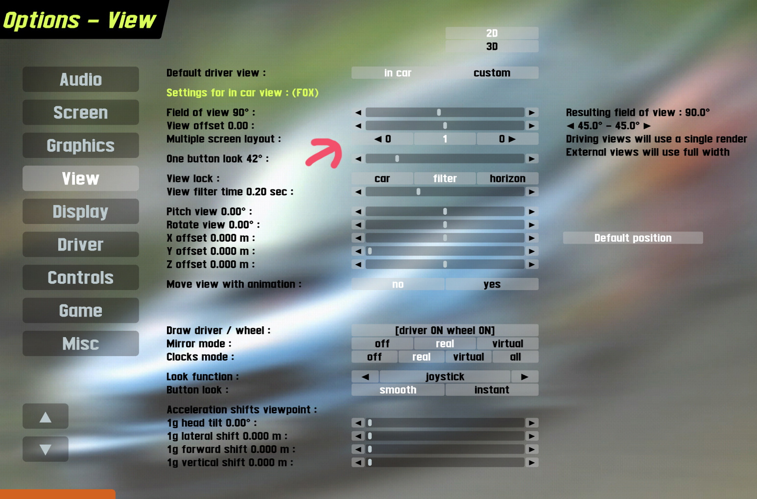 Any way to fix this? By setting my view offset to -0.75 I can see the road ahead, but the driver still appears to be sat twisted in the car.