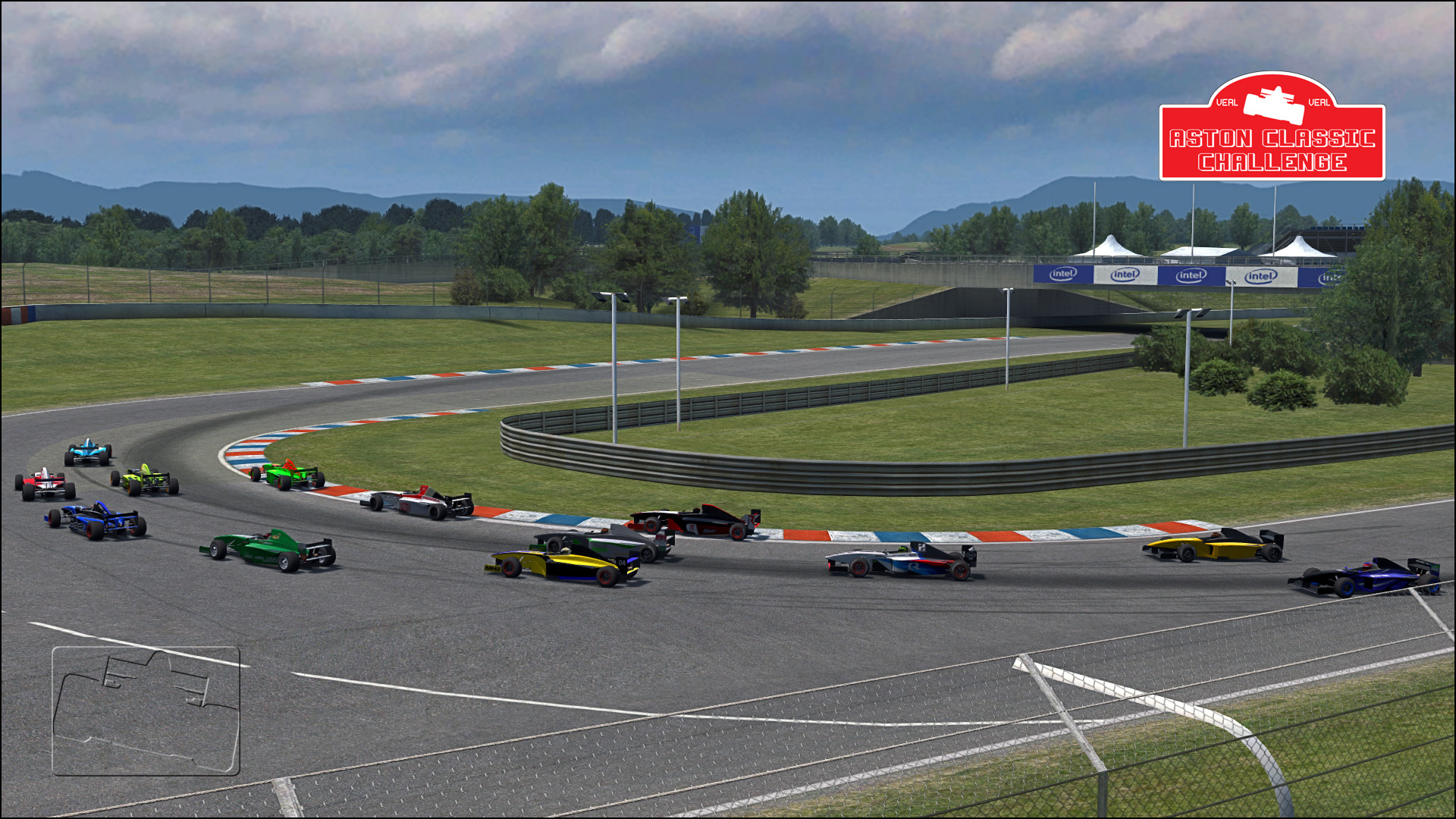 Aston probably is one of the most known environments of LFS S2 content as it features configurations apropriate for all cars,while the VERL car Formula V8 feels right in all of them. So does the 2nd shortest configuration codenamed "Club" - a circuit just over 3 kilometers in lenght,featuring long front stretch,a hairpin,followed by tricky S-turn,while circuit's final section has a difficult curved braking zone for final turn,where the inner front tyre will lose the perfect round chape very quickly if driver is not careful enough - finishing 65 laps on same set of tyres might be a tricky task.